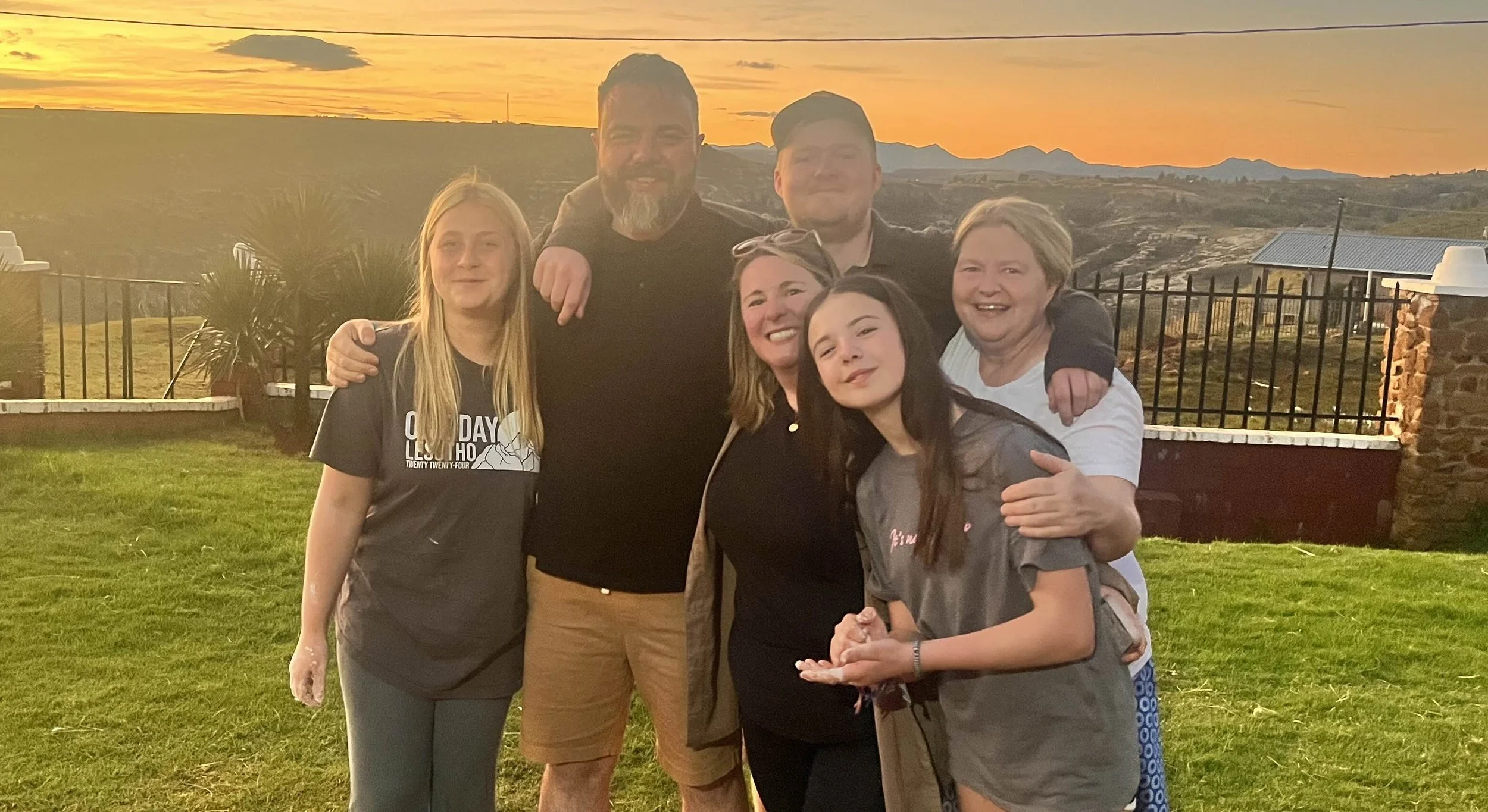 The Hughes and Duff Families. Left to right: Ellie, Rob, Patrice, Iwan, Penny and Tina